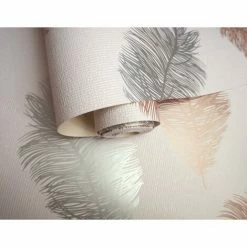 HOLDEN DECOR Feathers Wallpaper Glitter Metallic Rose Gold Silver Blush Pink Textured Holden