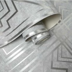 HOLDEN DECOR Delano Geometric Wallpaper Holden Metallic Textured Vinyl Grey Silver