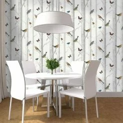 Holden Decor Dove Grey Multi Color Birds Trees Floral Butterfly Wallpaper