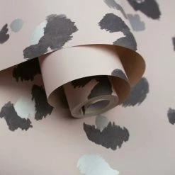 HOLDEN DECOR Exclusive Leopard Print Wallpaper Holden Animal Spots Grey Metallic Black White