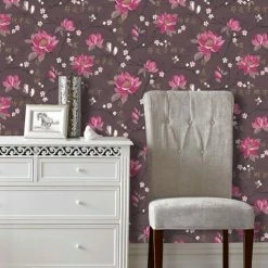 HOLDEN DECOR Flower Oriental Floral Wallpaper Kaori Plum Pink Gold Paste The Wall Holden