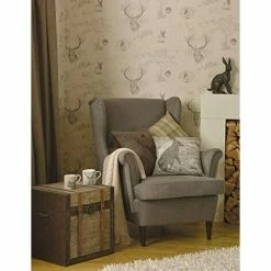 HOLDEN DECOR Holden Woodland Animals Stag Squirrel Hedgehog Metallic Wallpaper Cream 98012