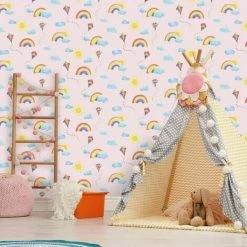 Holden Decor Kids Rainbows And Flying Kites Nursery Wallpaper Pink 91021