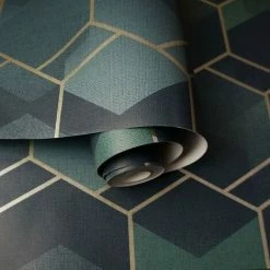 HOLDEN DECOR Asik Geometric Wallpaper Holden Teal Gilver Metallic Modern Contemporary