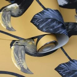 HOLDEN DECOR Toucan Trail Wallpaper Holden Jungle Tropical Birds Ochre Yellow Palm Leaf