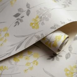 Ochre Lemur Wallpaper Holden Decor Yellow Green Pink Jungle Tropical Birds
